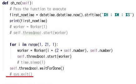 그런데 이렇게 하니까 당연하다면 당연하게도 위 스크린샷처럼 sys.exit()가 있어서 인지 그냥 1번 사이클이 돌고나서 종료가 되는 것을 확인할 수 있었습니다.