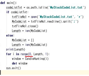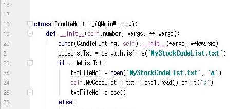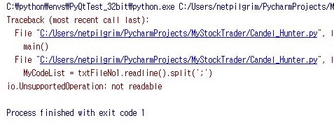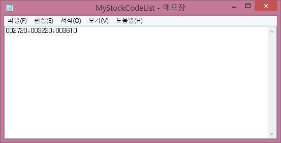 위 스크린샷처럼 일단 일련의 과정을 거쳐서 코딩을 합니다. 위 스크린샷처럼 MyStockCodeList.txt라는 텍스트 파일이 있는지 일단 만들어 주도록 합니다.