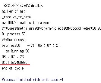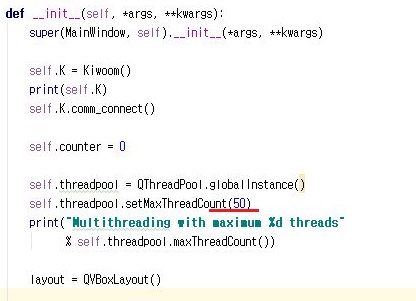 일단 한번 시험을 해 보기 위해서 한번에 50개의 종목에 대한 멀티 스레드를 만들어서 진행이 가능한지에 대해서 한번 알아보고자 합니다.