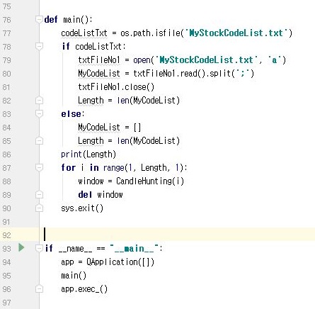 위 스크린샷처럼 일단 일련의 과정을 거쳐서 코딩을 합니다. 위 스크린샷처럼 MyStockCodeList.txt라는 텍스트 파일이 있는지 일단 만들어 주도록 합니다.