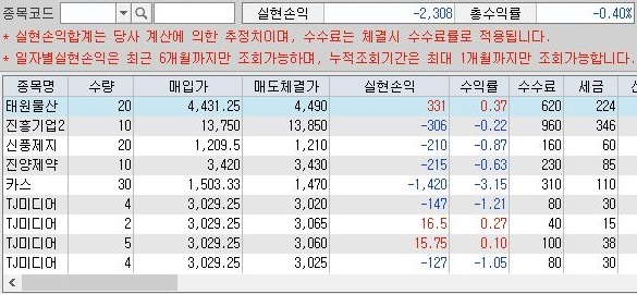 그런데 불행히도 이 매도는 위 스크린샷에서 볼 수 있는 것처럼 엄청난 손실을 입으면서 마무리가 되는 것을 확인할 수 있었습니다.
