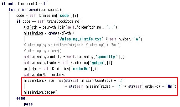 그리고 나서 위 스크린샷에서 볼 수 있는 것처럼 새로운 missing_list.txt가 생성이 될 수 있도록 만들어 주도록 해 봅니다. 이 작업을 Buy취소에도 똑같이 적용해 줍니다.