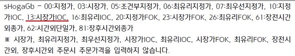 그런데 이게 Open API상에서 물어볼 수 없으면 전혀 소용이 없는데, 다행이도 매뉴얼을 보니까 이런것이 주문이 가능하다는 것을 볼 수 있었습니다.