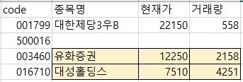그래서 이번에는 영웅문4에서 20일간의 평균 거래량을 한번 찾아보는 것으로 해서, 위 스크린샷처럼 겨우 2개의 종목을 더 추가할 수 있었습니다.