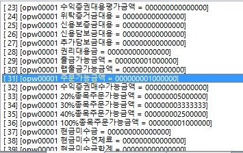 다음으로는 KOA Studio에서 OPW00001 이라는 TR에서 위 스크린샷에서 보이는 것처럼 다음으로 주문가능 금액 역시 100만원 나오는 것을 볼 수 있습니다.