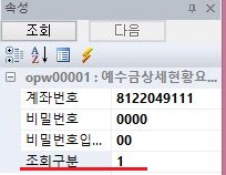 그런데 기존에는 조회구분을 2라고 일반조회로 했는데, 그러지 말고 1로 바꾸어서 예상구분으로 만들어 주도록 만들어 줍니다.