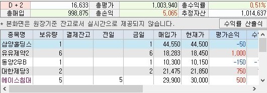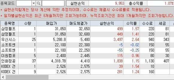 결국 이런 식으로 3번의 손해를 보는 거래가 있었고, 이 거래때문에 라고 해야 할까요? 그래도 9900원을 넘는 상당한 수익이기는 하지만, 이 수익이 하루 1만원을 넘을 수 있었는데 아쉽습니다.