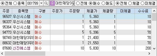 다음으로 매수역시 상당히 많은 케이스로 일어나는 것을 볼 수 있었습니다. 다만 이게 매도할 때도 마찬가지로 주문을 낸다고 다 되지는 않고 미체결이 되다가 체결이 되는 것도 상당히 많았습니다.