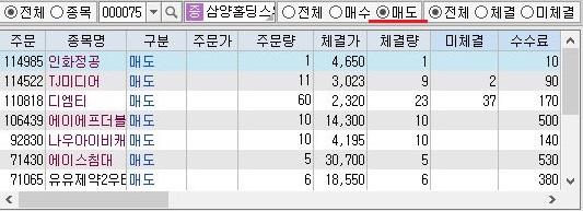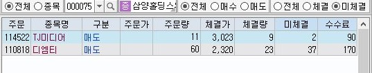 일단 그리고 매도주분 몇 건의 미체결이 나오기도 했습니다. 이 미체결이 아마 장이 마감이 되면서 없어지는 것으로 제가 생각을 하는데, 이 또한 어떻게 될지 궁금하기는 궁금합니다.