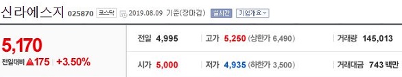 실제로 신라에스지도 거래량이 절대 적은 종목도 아니고, 현재가도 1천원 이상 나오는 것을 생각하면 상당히 결과가 이상하게 나왔다는 것을 볼 수 있습니다.