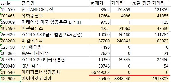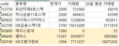 일단 이걸 네이버 증권에서 검색을 해보면, 위 스크린샷과 같이 거래량이 절대로 0인 종목이 아닌데, 이상하게 저렇게 나온 것을 확인할 수 있었습니다.