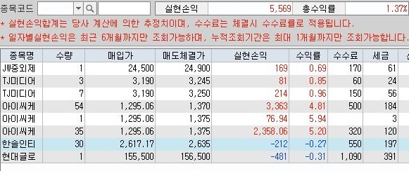 일단 매수가 무수히 많이 일어난 것에 비해서 매도는 5건 일어난 것을 확인할 수 있었습니다. 이제 결과가 어떻게 되었느냐 하면..........