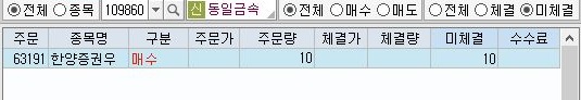 그리고 나서 위 스크린샷을 보시면 알 수 있듯이 14일날은 어떻게 해서 미체결도 상당히 적은 것을 확인할 수 있었습니다.