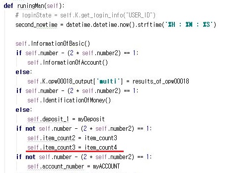 그리고 나서 첫번째 스레드가 아니면 이 for문을 돌리기 위한 변수를 서로 공유할 수 있도록 만들어 줍니다. 이렇게 하는 이유는 역시 opw00004라는 TR을 한번만 조회하기 때문입니다.