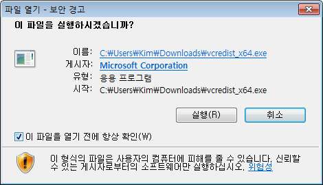 일단 64비트용 운영체제 이기 때문에 마이크로 소프트의 vcredist를 설치하는 쪽으로 정보를 얻는데 성공했습니다. 그래서 이 작업을 시작해 봅니다.