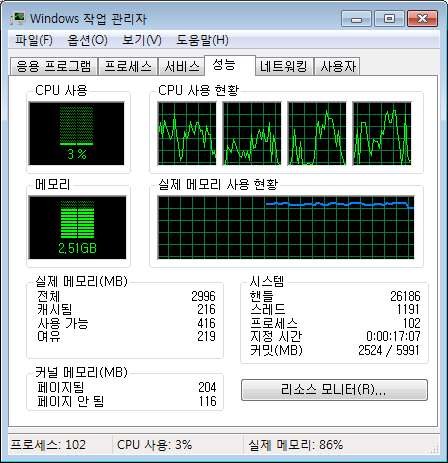 일단 이렇게 날짜까지 지정을 해서 작업을 한 것 까지는 그렇게 나쁘지 않았습니다. 그런데 원래의 컴퓨터에 비하면 상당히 느리게 작업이 일어나는 것을 볼 수 있었습니다.