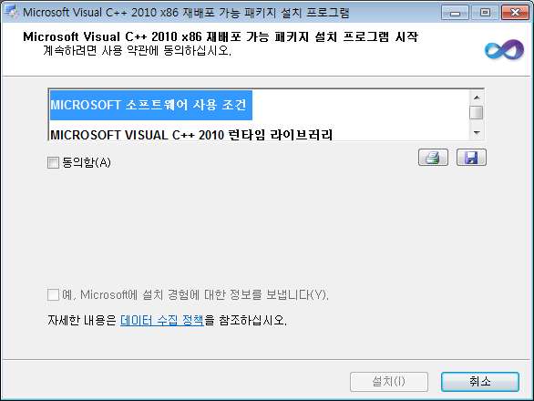 이렇게 마이크로 소프트의 Visual C++를 설치하는 단계에 들어가서 한번 작업을 해 주도록 하는 것 입니다. 그런데 문제가 발생했습니다.
