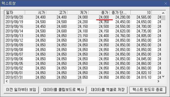 우선 종가라고 해서 가장 최근의 값이 얼마인지는 알 수 있었습니다. 여기서는 큰 문제없이 해결이 되는 것인가 했습니다만.......