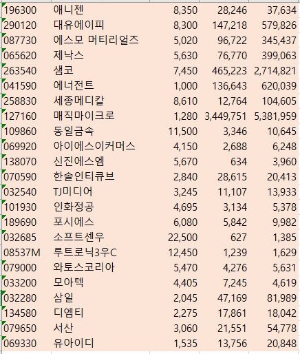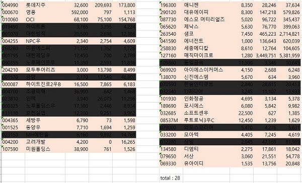 코스닥에서 가지고 왔는 종목들 역시 어떻게 해서 작업을 하면서도 중간에 얼어붙는 현상이 계속 발생해서 이래저래 수작업으로 감시를 하기는 해야 했습니다.
