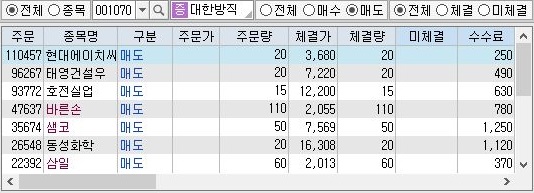 일단 이러니 저러니 해도, 오후 3시 30분이 지나서 화요일의 주식 시장도 마무리가 되었습니다. 이렇게 해서 위 스크린샷과 같이 전부 매수가 상당량 일어났다는 것을 알 수 있었습니다.