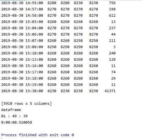 확인결과, 위 스크린샷처럼 제대로 시간이 나오면서 dataframe이 생성이 되는 것을 확인할 수 있었습니다. 이제 이 내용을 바탕으로 해서, 한번 계산에 들어갈 시간이 되었습니다. 일단 여기까지만 해서는 우선 기존에 6시간씩 걸리던 코스피나 코스닥의 평균회귀 테스트가 더 짧은 시간안에 끝이 날 수 있는 것으로 바꾸었다는 것을 알 수 있습니다.