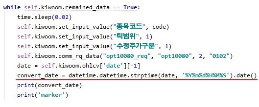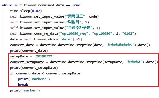그래서 이런 경우 setupDate라는 항목을 따로 만들어서, 이 항목보다 날짜가 더 작다 = 더 과거이면 while문을 break하라는 형식으로 만들어 줍니다.