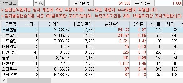 이렇게 해서 하루종일 수익이 얼마나 올랐는지 한번 살펴 보았는데, 위 스크린샷을 보시면 알 수 있듯이 5만원이 넘는 수익을 올리는 기록을 달성한 것을 볼 수 있습니다.