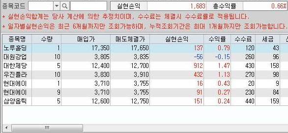 그래도 수익을 많이 늘리는 데는 성공할 수 있어서, 위 스크린샷에서 보이는 것처럼 1600원을 넘는 수익을 올리는 것을 확인할 수 있었습니다.