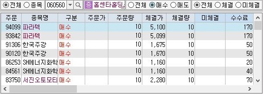 그리고 1000만원 자본금의 조건에서 워낙에 많은 거래가 있었기 때문인지 몰라도 미체결도 상당히 많이 나왔습니다. 일단 모두 처분하기 위한 종목들이 나왔다는 것을 알 수 있었습니다.