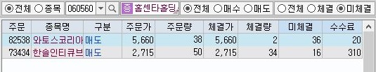 그리고 1000만원 자본금의 조건에서 워낙에 많은 거래가 있었기 때문인지 몰라도 미체결도 상당히 많이 나왔습니다. 일단 모두 처분하기 위한 종목들이 나왔다는 것을 알 수 있었습니다.