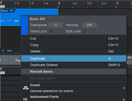 이제 한개의 리전을 복사하기 위해서 기존의 방법처럼 Ctrl + C와 Ctrl + V를 사용해도 되지만, 위 스크린샷처럼 리젼에서 마우스 우클릭을 해서, Duplicate라는 명령어를 이용해도 됩니다.