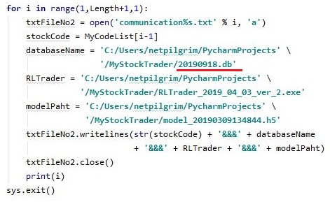 그리고 나서 각각의 스레드가 참고로 해야 할 communication.txt를 확보하기 위해서 18일 데이터 베이스를 지정해 주도록 합니다.