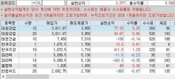 이번에는 아예 손해를 본 것을 확인할 수 있었습니다. 일단 손해의 폭이 그리 크지는 않지만, 그래도 손해 자체가 나온 것을 보니, 이래저래 속이 상하기는 합니다.
