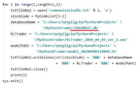 다음으로는 27일자 데이터 베이스를 지정하는 것으로 이제 communication.txt라는 일련의 텍스트 파일을 생성해서 각각의 스레드들이 읽어 줄 수 있도록 만들어 줍니다.