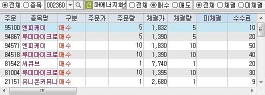 이렇게 해서 이제 오후 3시 30분이 되어서 중단이 되었습니다. 일단 condition 1이라고 해서 일단 대조군의 매수결과를 보고 있습니다. 이전에 워낙에 많이 사서인지 금요일에 매수 건수는 상당히 줄어든 것을 확인할 수 있습니다.