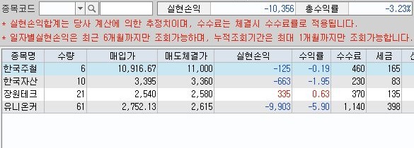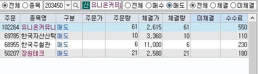 그리고 나서 다음으로는 매도 현황을 한번 보도록 하겠습니다. 그다지 상황이 좋지 않은 - 주식 시장 자체가 하락장인 상황에서는 위 스크린샷과 같이 그다지 상황이 좋지 않은 것을 볼 수 있습니다.