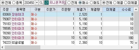 그러다가 이제 오후 3시 30분이 지나서, 먼저 대조군인 condition 1번의 매수 현황을 살펴 보도록 하겠습니다. 일단 지난번에 워낙에 많이 매수했기 때문에, 그렇게 많이 매수가 일어나지 않은 것을 볼 수 있었습니다.