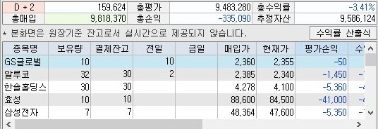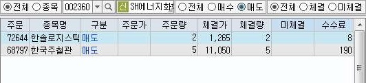 그리고 나서 다음으로는 매도 현황을 한번 보도록 하겠습니다. 그다지 상황이 좋지 않은 - 주식 시장 자체가 하락장인 상황에서는 위 스크린샷과 같이 그다지 상황이 좋지 않은 것을 볼 수 있습니다.