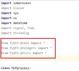 그리고 나서 QThread를 사용해서 작업을 하려고 했었기 때문에, 일단 위 스크린샷처럼 PyQt5를 import해 오도록 작업해 봅니다.