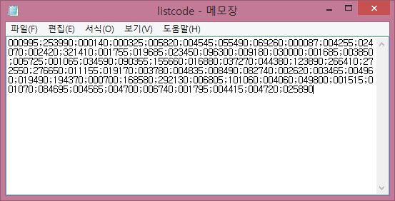 그래서 일단 위 스크린샷에서 보이는 것처럼, 모든 코드의 리스트를 세미콜론을 통해서 구분을 하는 식으로 입력을 해 놓도록 합니다.