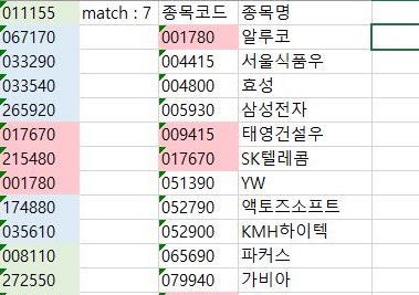 문제는 지난주 결과와 한번 매치시켜 보니까, 위 스크린샷의 내용처럼 일단 매치가 되는 것은 총 13개 밖에 되지 않고, 나머지 27개를 처분해야 한다는 것을 알 수 있었습니다.