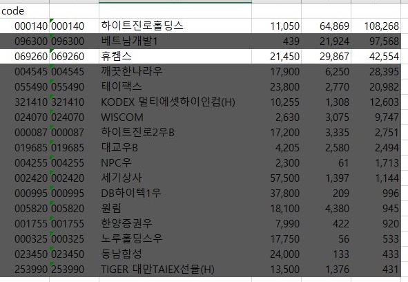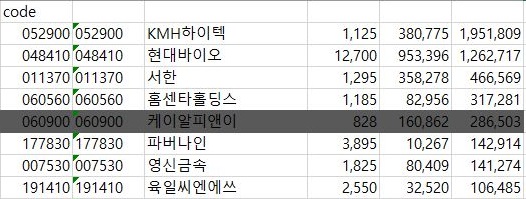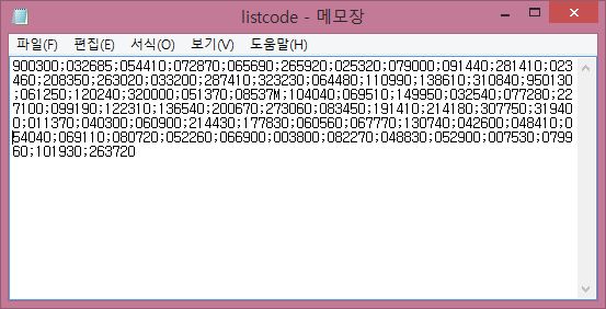 이제 코스닥의 결과를 알아보기 위해서 한번 위 스크린샷과 같이 txt파일에 코드 리스트를 입력하는 단계에 들어가 보도록 합니다.