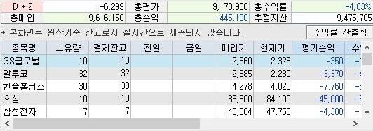 사정이 있어서 이래저래 포스팅이 늦어졌습니다. 일단 어제인 월요일까지의 주식 모의투자 실험은 무언가 상황이 좋지 않아서 이래저래 아무것도 되지 않았는데, 일단 이거라도 포스팅을 하고자 합니다.