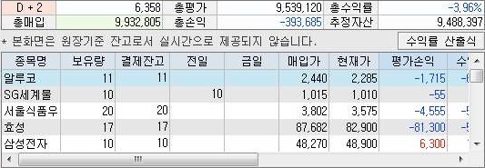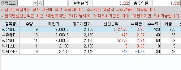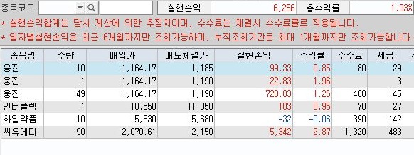 그리고 나서 다음으로는 실현손익을 보면, 위 스크린샷에서 나오는 것처럼 이단 여기서는 3천원 수준의 수익을 올린 것을 확인할 수 있었습니다.
