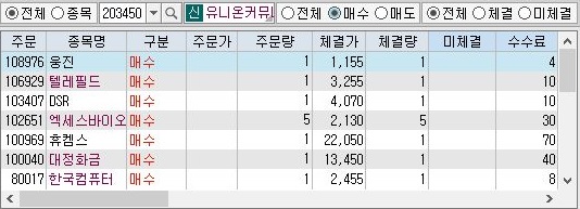 이렇게 해서 오후 3시 30분을 지나서, 위 스크린샷과 같이 일단 매도 주문이 나오는 것을 확인할 수 있었습니다. 2일 녕속 불발탄만 나오다가 드디어 condition 1번에서 거래가 성립된 것 입니다.