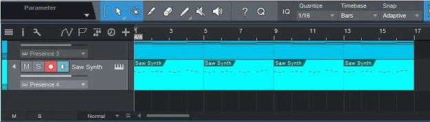 어제는 오랜만의 주중의 휴일이라서 prime 4 one의 독학에 들어갔습니다. 일단 이번 포스팅에서는 음악의 3대 요소라는 '리듬', '화음', '멜로디' 중에 멜로디를 만드는 과정을 올려보고자 합니다. 지금까지 드럼으로 리듬을 만들었고, 베이스와 피아노가 화음이라고 할 수 있다면, 아래의 그림과 같이 Saw Synth가 멜로디를 담당한다고 할 수 있습니다.