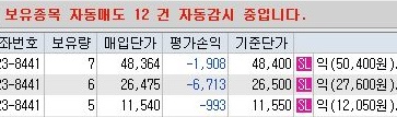 그리고 20개를 넘어서 30개 가까이 있었던 보유종목 자동매도 감시종목의 갯수가 12건으로 줄었는 것을 확인할 수 있었습니다.