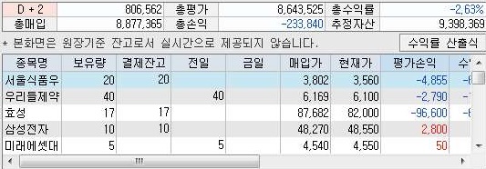 수요일 한글날이 끝나고 나서, 다음으로 해야 할일은 역시나 목요일날 주식 모의투자에 들어가 보는 일이라고 할 수 있습니다. 그런데 이런 작업을 하기 위해서는 일단 먼저 해야 하는 일이 있었는데, 계속해서 오르지 않고 보유만 되고 있는 주식 종목들 때문에 아무런 행동이 일어나지 않는 다는 것 입니다.