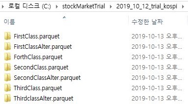 이렇게 해서 결과가 되는 파케이 형식의 파일이 하나하나 들어가 있는 일련의 폴더를 얻는데 성공할 수 있었습니다. 이제 다음 작업에 들어가 보도록 해야 합니다.