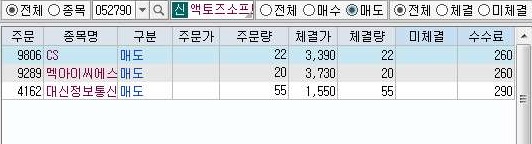 다음으로는 매도현황을 보도록 하는데, 매도는 그렇게 많이 이루어 지지 않는 것을 볼 수 있었습니다. 다만 화요일은 이래적으로 아래와 같이 미체결이 나오는 것을 볼 수 있었습니다.
